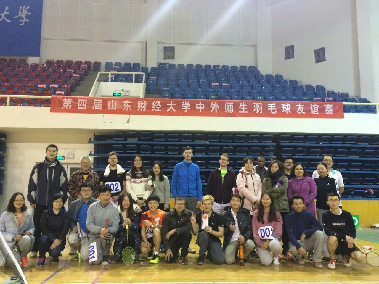 11月23日晚,由留学生工作办公室主办的“山东财经大学第四届中外师生羽毛球友谊赛”在舜耕校区体育馆举行。参赛队员为我校外国留学生、外籍教师、学生羽毛球协会成员以及国际交流与合作处和国际教育学院部分教师。参赛留学生和外教分别来自荷兰、捷克、意大利、韩国、柬埔寨、日本、哈萨克斯坦、美国、菲律宾等国家。