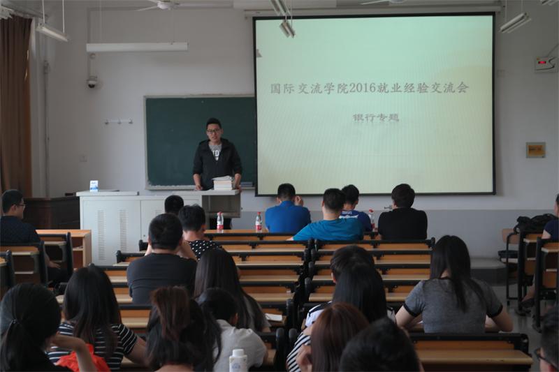 针对近年来毕业生考银行热,为了使同学们更加清晰的了解银行就业的状况,帮助他们顺利考取理想的职位,5月25日下午2点,学院在舜耕校区1404教室开展了2016年就业经验交流会之银行专题。学工办全体老师出席会议,2013级全体中加班同学参加会议。