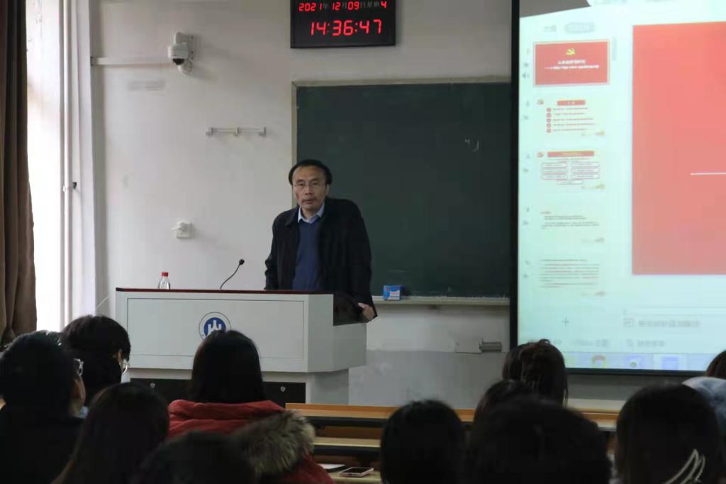 12月9日下午,国际教育学院党委书记张建以《从革命到现代化——中国共产党百年奋斗历程的主题变奏》为题,为本学期新发展党员及发展对象讲了党课。
