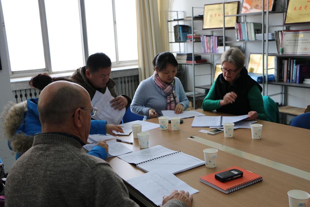 见面会开始,史汝波副院长代表国际教育学院对外教的到来表示热烈欢迎,并对本学期外方课程的相关工作做了总体部署。尤碧珍主任对与会人员以及本学期6门外方课程进行了介绍。刘明辉老师组织大家领取了课表、教材以及学生分组名单后,外教和助教针对教材内容分组对授课方式、课程进度进行了交流。见面会结束后,助教带领外教到教学楼熟悉教室环境。