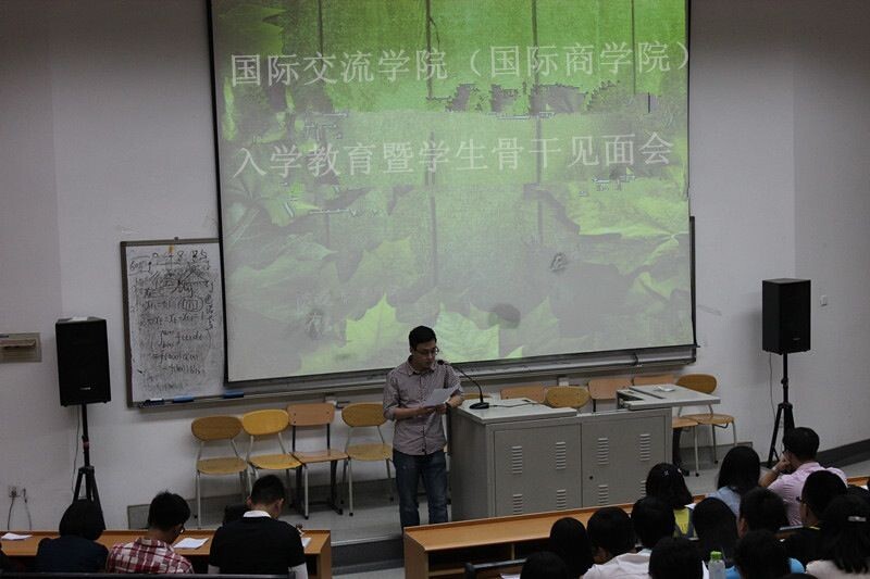 为了使2014级新生尽快熟悉大学的学习和生活,并充分认识和了解大学学生干部的职责所在,国际交流学院(国际商学院)于9月14日在第三阶梯教室召开了新生入学教育系列活动之新老生及学生骨干见面会。出席本次大会的有学生会主席团及学生会各部部长、学生社团负责人和2014级全体新生。会议由学生会副主席王佳伟主持。