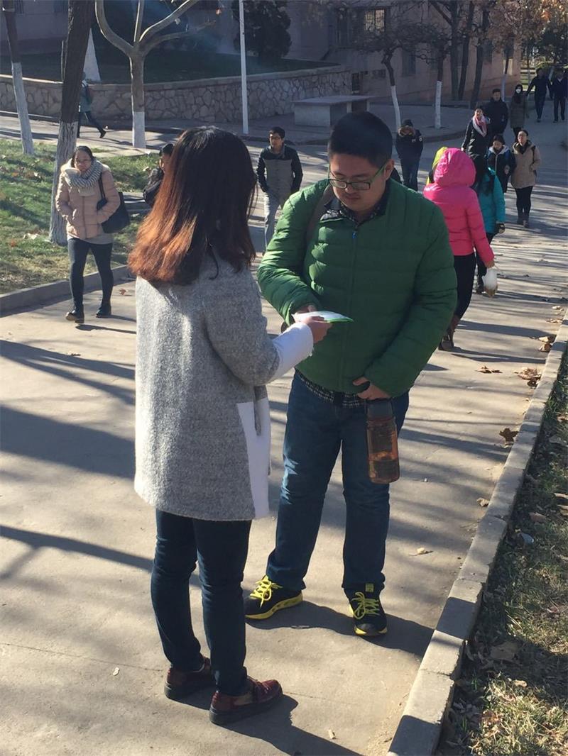 为了帮助敬老院的老人们准备一些过冬保暖物品,12月16日,我院学生社团青年志愿者协会开展了“义卖口罩防雾霾 捐献善款送温暖”的爱心活动。