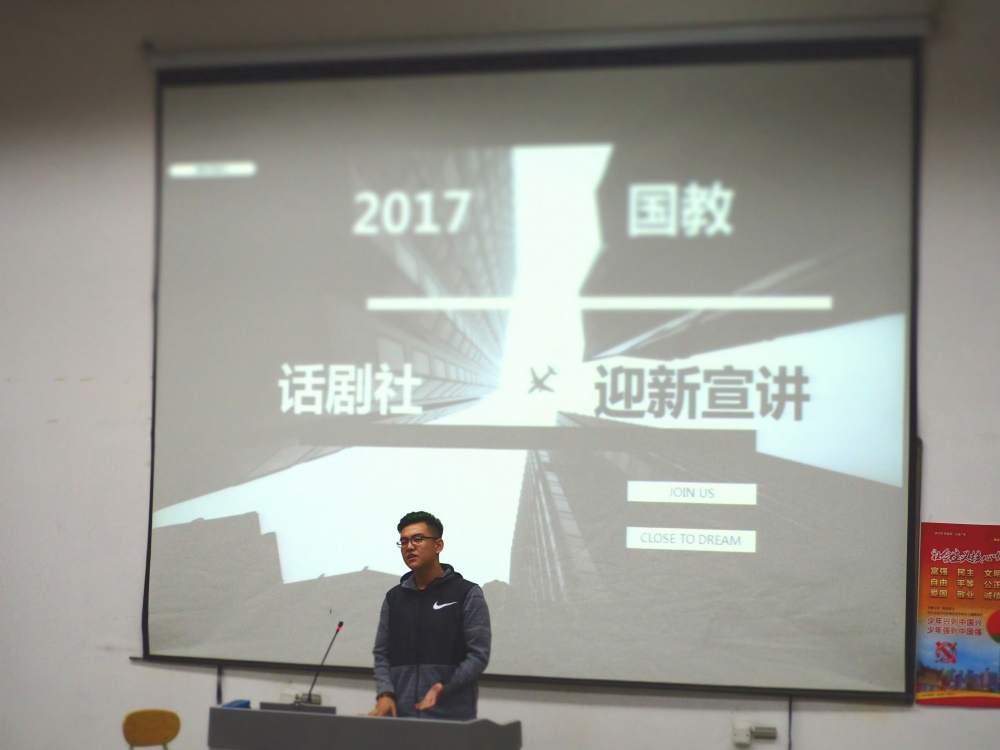 下午6点,各社团负责人就位,同学们陆续进入阶梯教室。本次纳新宣讲活动由学生会社团部长李雪岩主持。学院现有英语角、书友社、话剧社、青鸟摄影协会、青年志愿者协会、辩论协会、SDC舞社、乒羽协会、音乐社共9个社团,均参与此次纳新宣讲活动。
