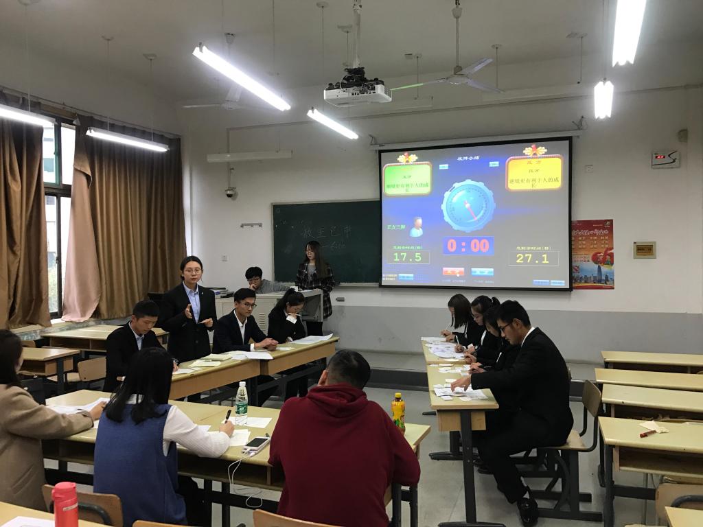 11月12日下午2点,比赛正式开始。4场比赛,32位辩手,为我们带来了精彩绝伦的视听盛宴。赛场上,辩手们据理力争互不相让,你来我往针锋相对,唇枪舌剑妙语连珠,对于这个辩题的讨论也进入了一个新的高度,令人赞叹连连,掌声也不绝于耳。比赛结束后,评委对辩手们的出色表现高度赞扬,也指出了几点美中不足。下午6点30分,随着终场铃声响起,四场练习赛全部进行完毕。