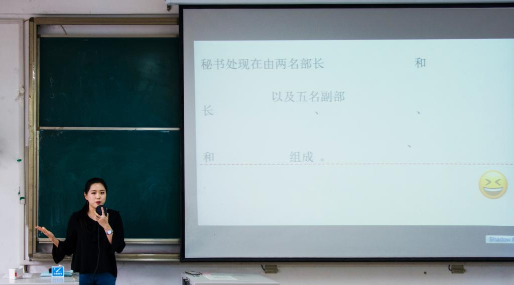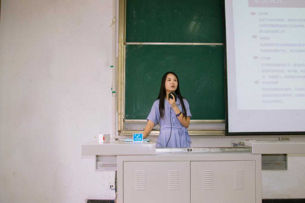 赵丹宁代表国际教育学院主席团,深入浅出地介绍了我院16个学生会部门的分工与职责,并大体概括了各部门日常的工作。随后,秘书处、学习部、纪检部、卫生部、文艺部、体育部、网络新闻部、宣传部、生活部、外联部、社团部、社会实践部、科技创新部、心理健康部、校友联合会等部门代表依次上台宣讲,详细讲述了各自部门的工作职责和工作日常,介绍了本部成员以及加入本部的相应要求等。2018级新生们认真记录,并不时对自己感兴趣的部门进行发问,学生骨干积极解答,经过为期一个半小时的宣讲,新生们对学生会各部门的职责已有了大致的了解,对自己的心仪部门也有了大致的判断。