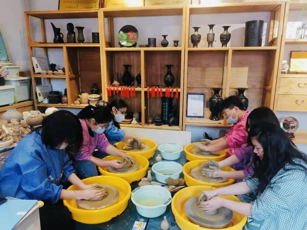 首先,学生们对百花洲传统工艺工作站进行了参观,感受到了山东省各类传统文化的独特魅力。随后,学生们分为陶艺组和掐丝珐琅组,分别进行了陶艺和掐丝珐琅制作。