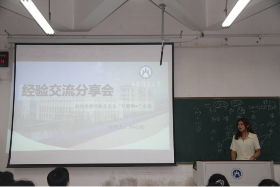 校平行班级“未来合伙人”创新实验班成员、2019级中加一班刘心怡同学从科创竞赛简介、作用、如何参赛以及个人提升方面进行了的科创竞赛的相关分享,她认为参加创赛不仅可以实现自我提升,拓宽视野,还可以借助这个机会结交优秀队友,提高团队的合作沟通能力并培育创新思维,并期望同学们于比赛中学习,在项目中成长。