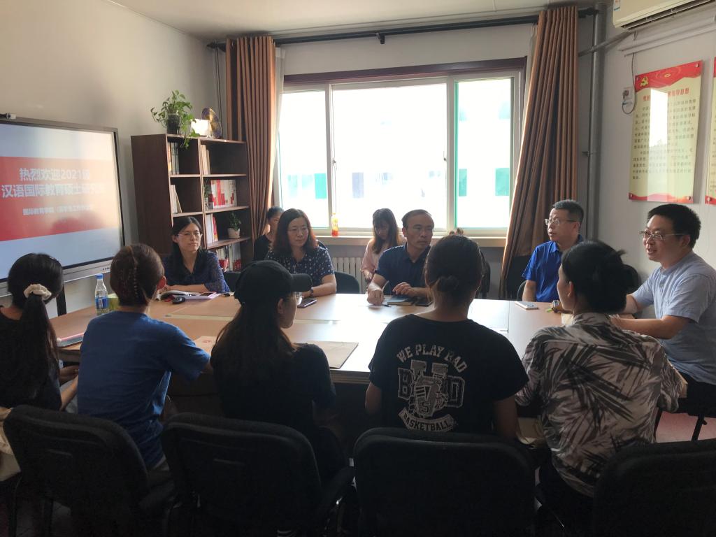 9月13日下午,国际教育学院在干训楼9402举行2021级研究生见面会。党委书记张建、院长刘增美、党委副书记于栋、辅导员赵立霞、研究生教学秘书程燕群及2021级研究新生参加,见面会由院长助理王英杰主持。