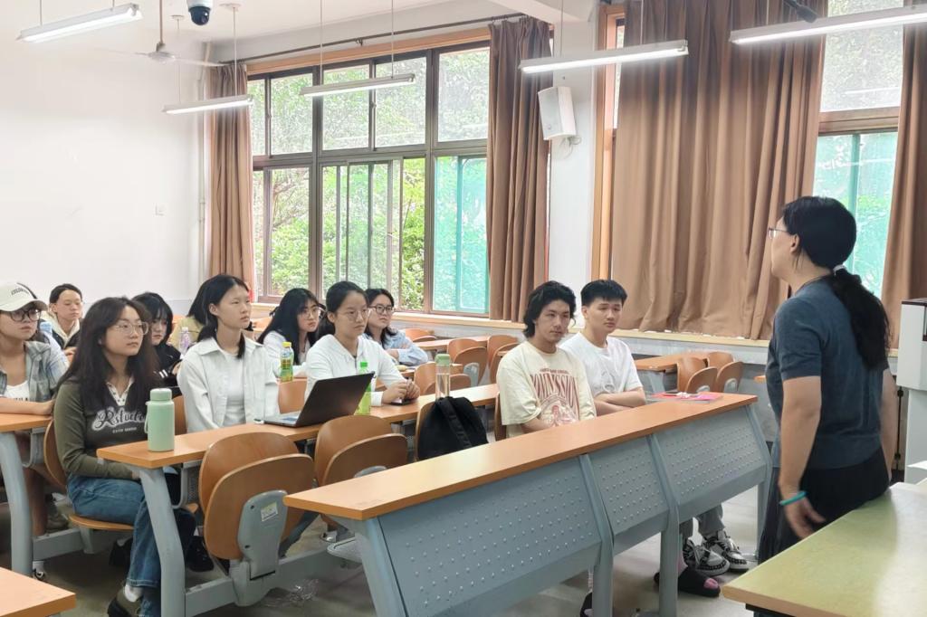 本次座谈会前期已经收集了学生的未来规划。活动伊始,陈华介绍了座谈会的主题与初衷,并对学生们的未来发展寄予厚望。之后由齐瑞霞、褚福侠进行发言。齐瑞霞提到,随着大二课程的深入,学生们将有机会接触到更多专业知识。她鼓励学生提前规划和准备,积极参加柬埔寨“蒲公英”海外实践基地的活动,提升教学实践能力。随后,褚福侠分享了学姐学长们的考研考公经验,并结合自己的亲身经历,鼓励学生们拓宽视野与就业方向。她强调,学生们应该意识到就业方向的多样性,并积极探索适合的职业道路。她鼓励学生们即使在面临学业、就业压力时,也不要轻言放弃,勇敢地追求梦想。