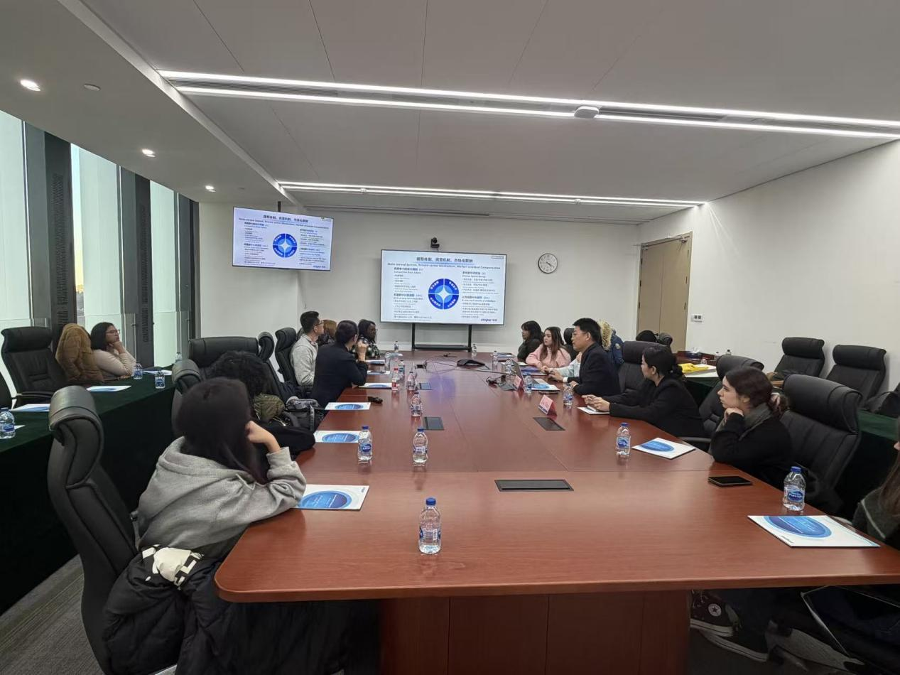 随后,在浪潮集团会议室,浪潮通信信息海外合作部专员为学生们作了专题分享。他们详细介绍了浪潮的全球化布局、企业社会责任理念,以及公司在推动经济增长、促进社会进步、提升员工福利等方面的实践。讲解过程中,法国学生全情投入于此次交流,并在互动环节踊跃提问,就技术发展趋势、企业人才战略、跨文化企业管理等话题进行了深入交流,现场气氛热烈。