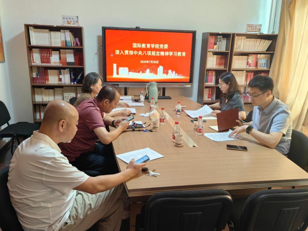 7月28日,国际教育学院党委召开深入贯彻中央八项规定精神学习教育推进会,认真落实关于开展深入贯彻中央八项规定精神学习教育“回头看”的部署安排。会议由学院党委书记张红燕主持,全体领导班子成员参加。
